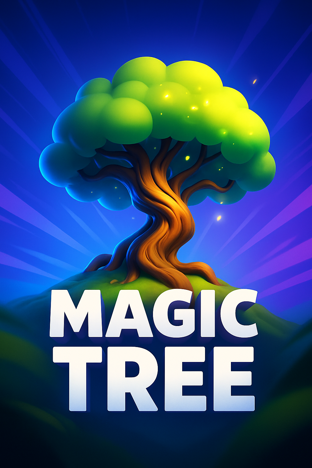 /Collection: /by davooda/Type: PNG/A stunning illustration of a magical tree set against a gradient background. The tree features vibrant green foliage and a swirling trunk, with dynamic rays emanating from a central point, creating a lively atmosphere.