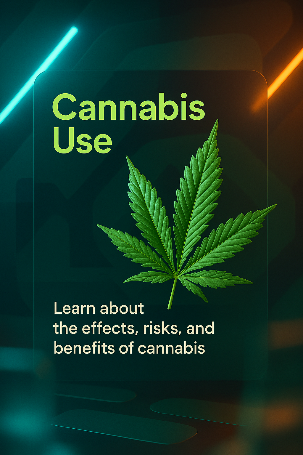 /Collection: /by davooda/Type: PNG/A modern educational graphic featuring a cannabis leaf, designed to inform about the effects, risks, and benefits of cannabis. Suitable for health awareness campaigns.