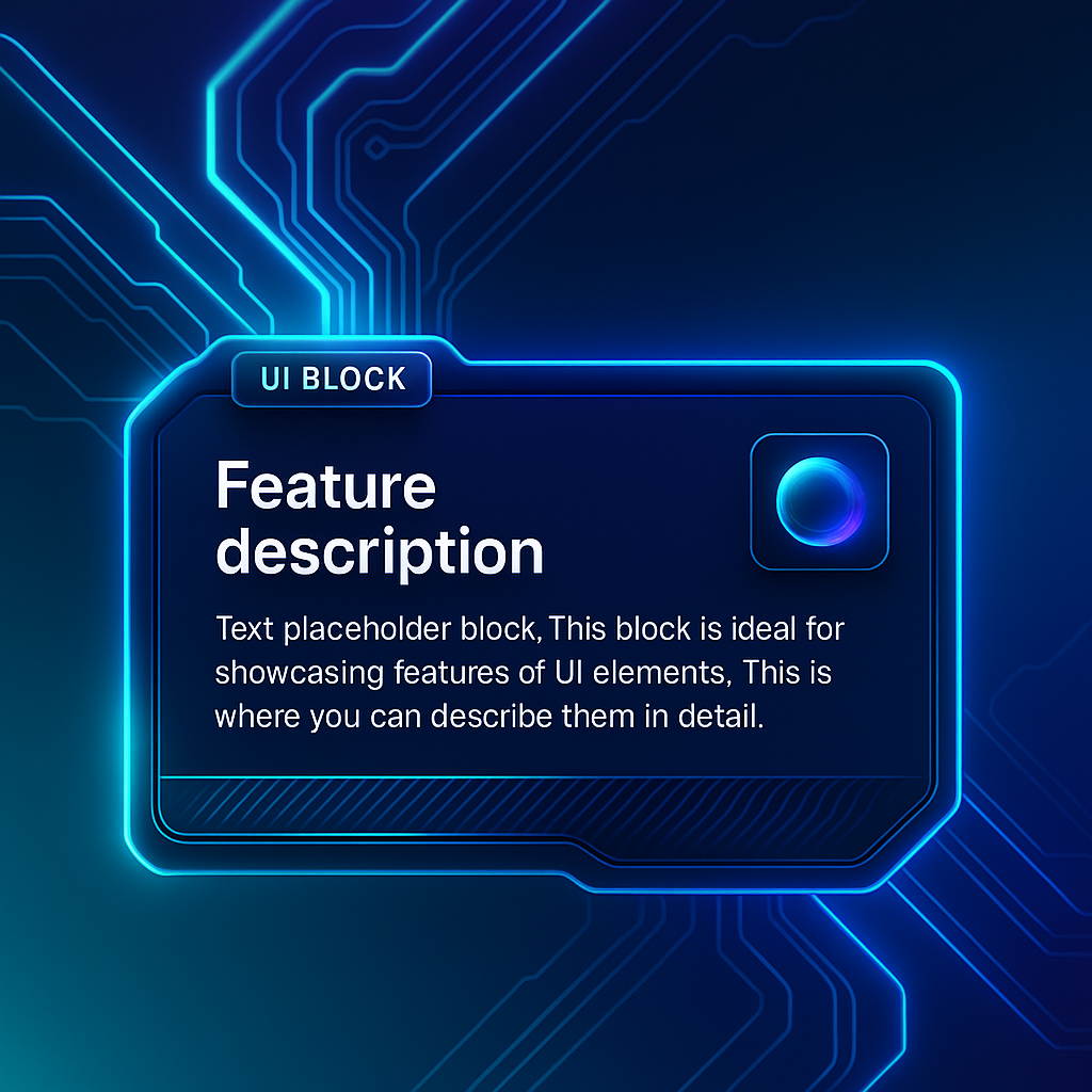 /Collection: /by davooda/Type: PNG/A vibrant cyberpunk-style background featuring a modern UI block for showcasing features. The design includes glowing accents and a futuristic aesthetic with layered visual elements.