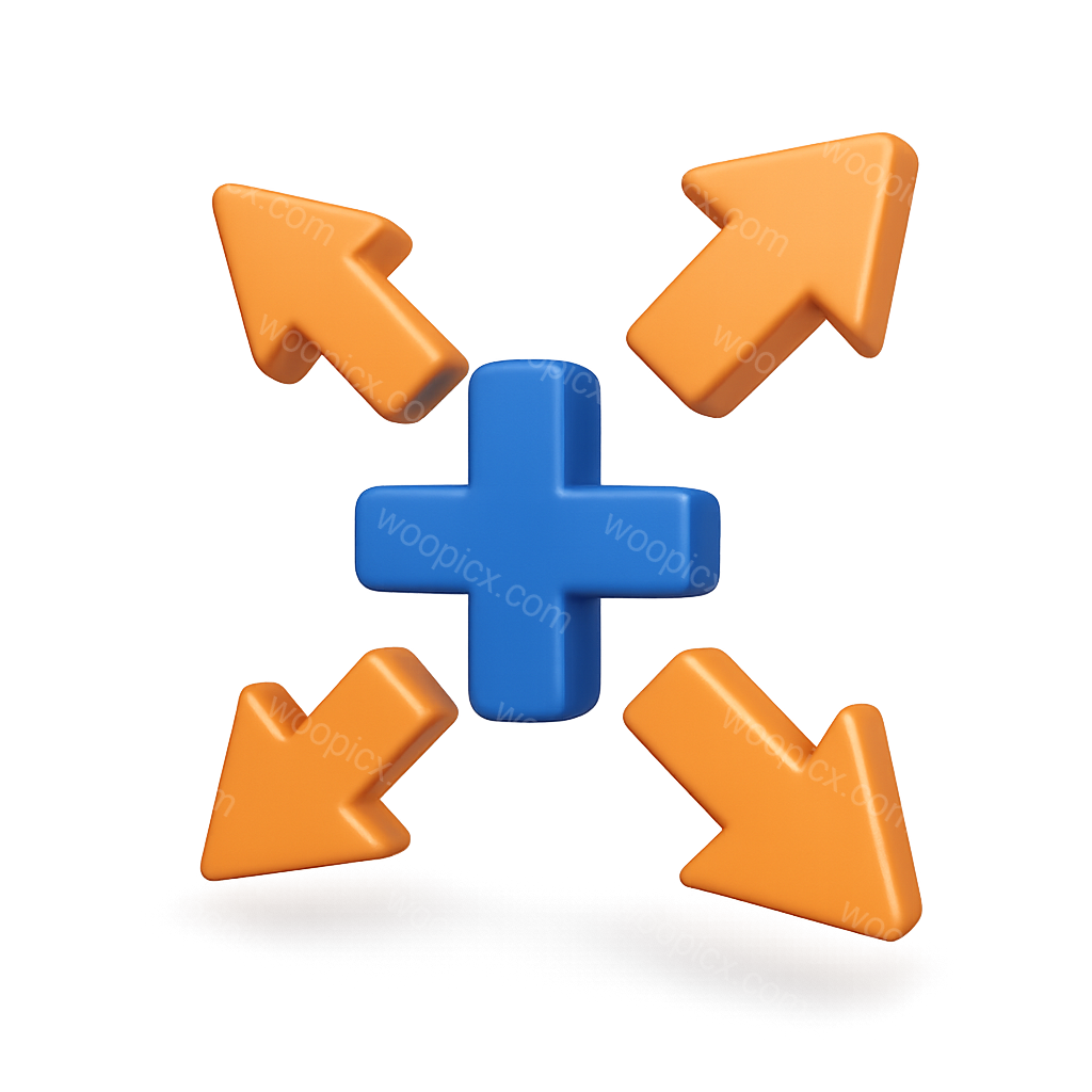 3D Arrows Pointing Inward with Central Plus Icon