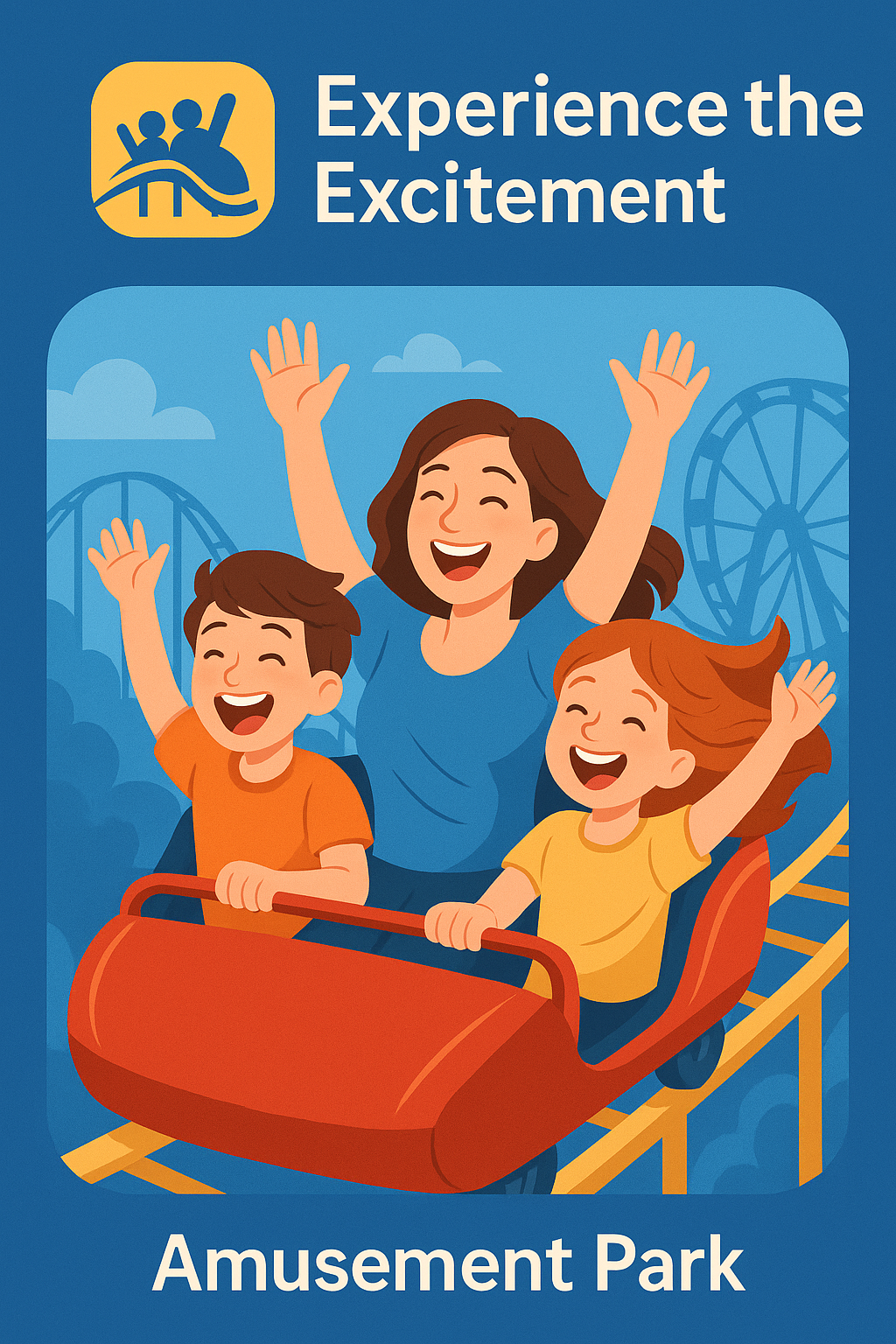 Fun Amusement Park Poster Featuring Happy Family on Roller Coaster