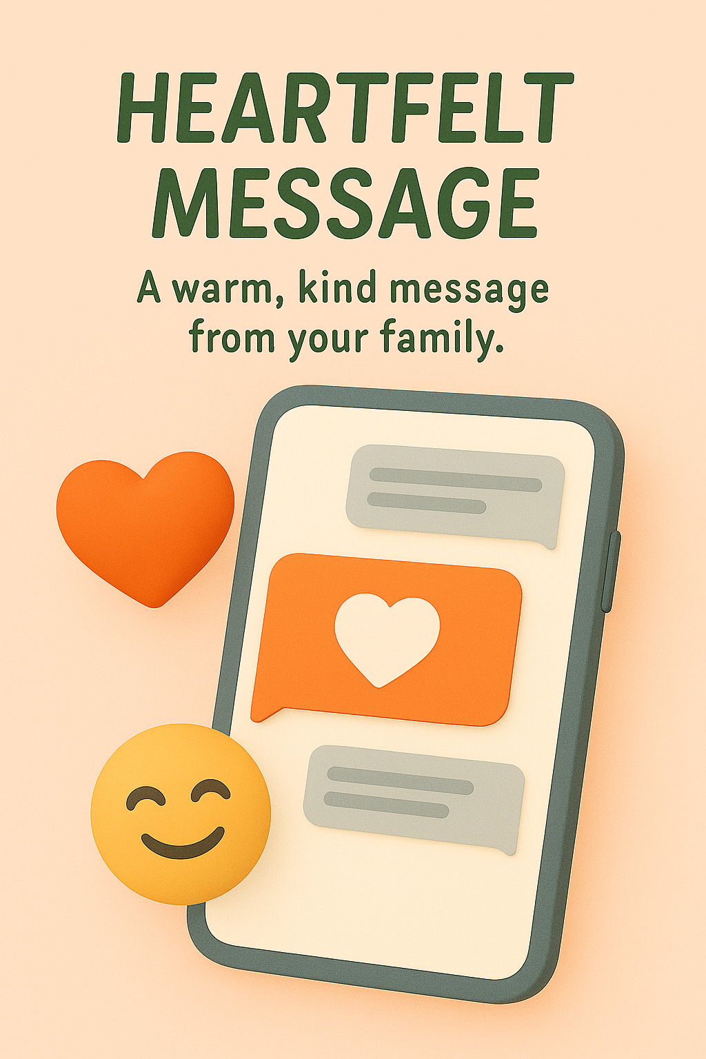 A vibrant 3D illustration depicting a smartphone displaying a warm, kind message. Ideal for family-oriented communications or social media posts.