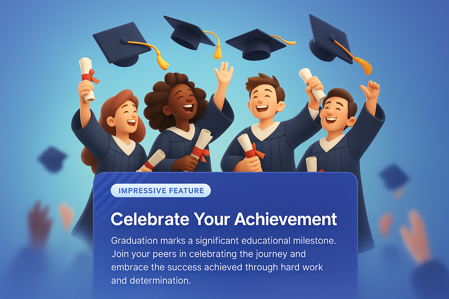 /Collection: /by davooda/Type: PNG/A vibrant illustration of students joyfully throwing graduation hats into the air. They hold certificates, embodying the spirit of achievement and educational success.