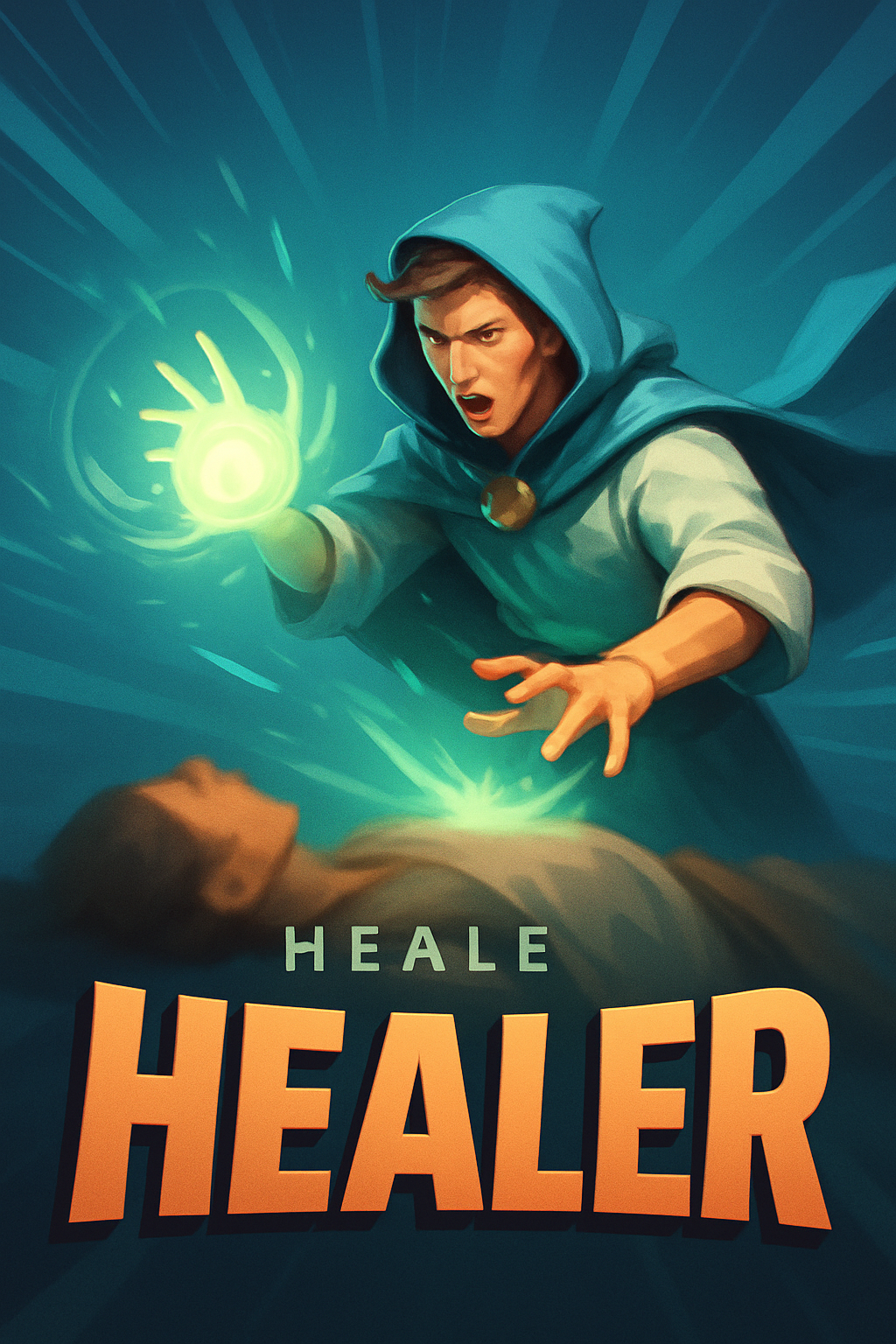 /Collection: /by davooda/Type: PNG/An energetic illustration showcasing a healer in action, casting a glowing orb of energy. The dynamic composition features layered elements and a smooth gradient background.