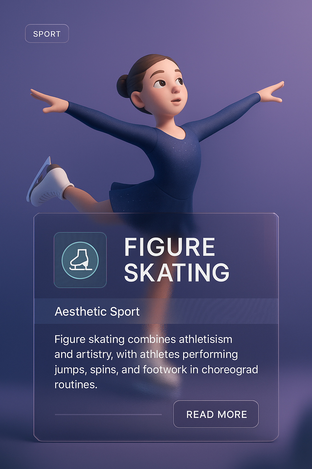 A visually appealing web page concept featuring a 3D figure skater illustration, integrated info panels, and a smooth gradient background, emphasizing the sport's elegance.