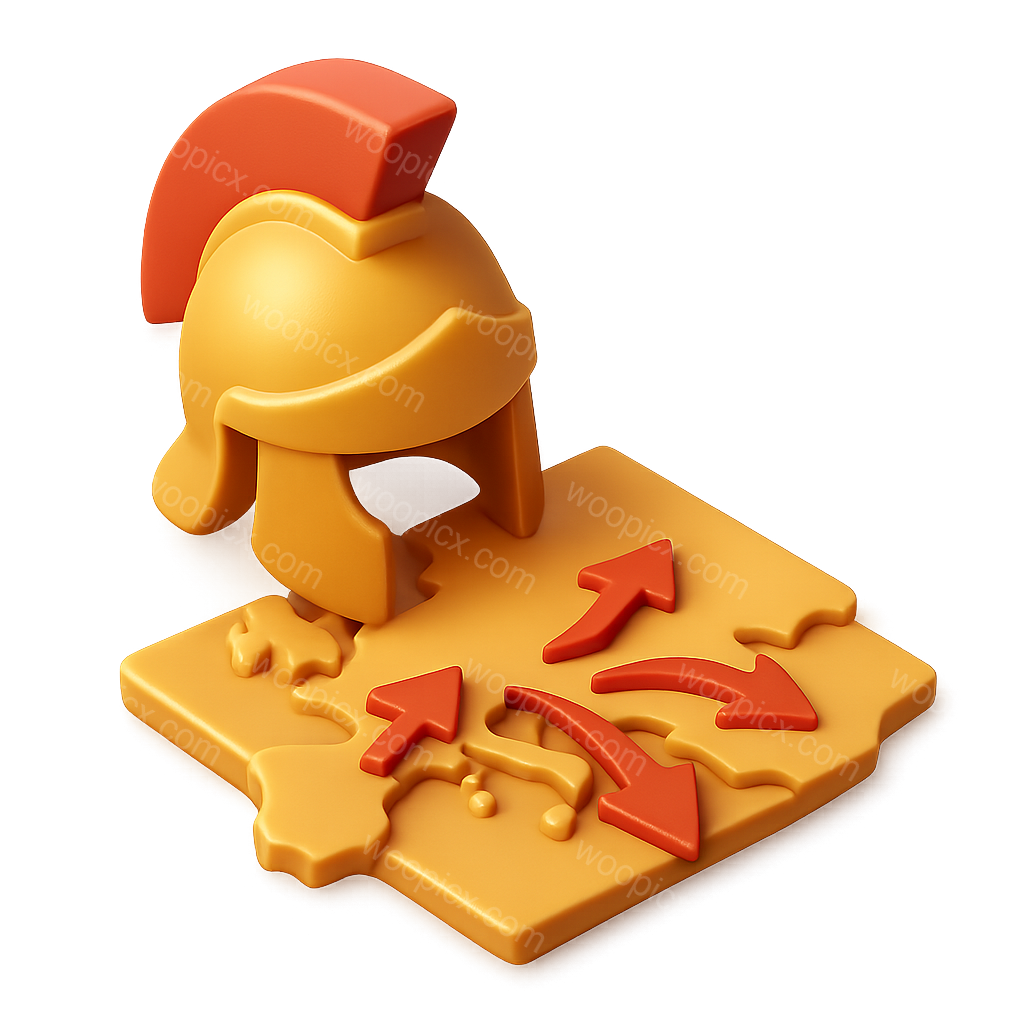 A stylized 3D icon depicting a gladiator helmet on a map with directional arrows, showcasing the theme of Roman Empire expansion.