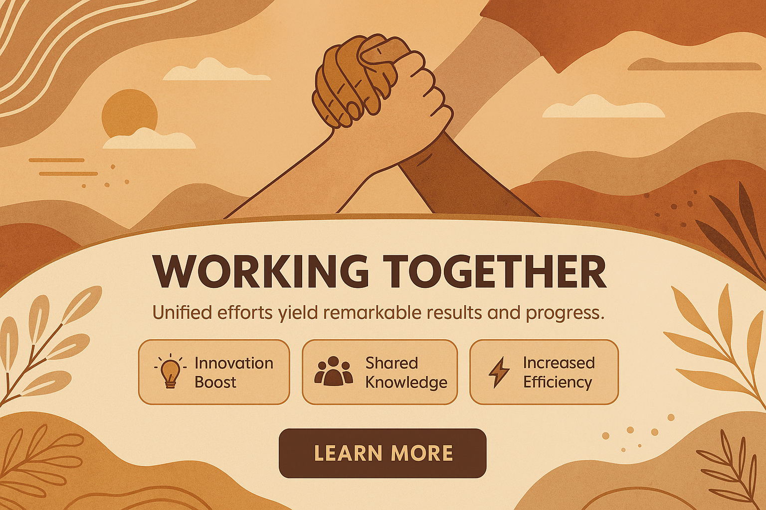 /Collection: /by davooda/Type: PNG/An illustration depicting united hands in a boho style, symbolizing teamwork and collaboration. The design features a harmonious color palette and clean layout with informative icons.