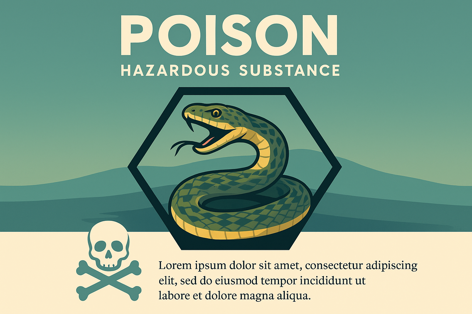 Stylized Illustration of Poison with Snake and Warning Symbol