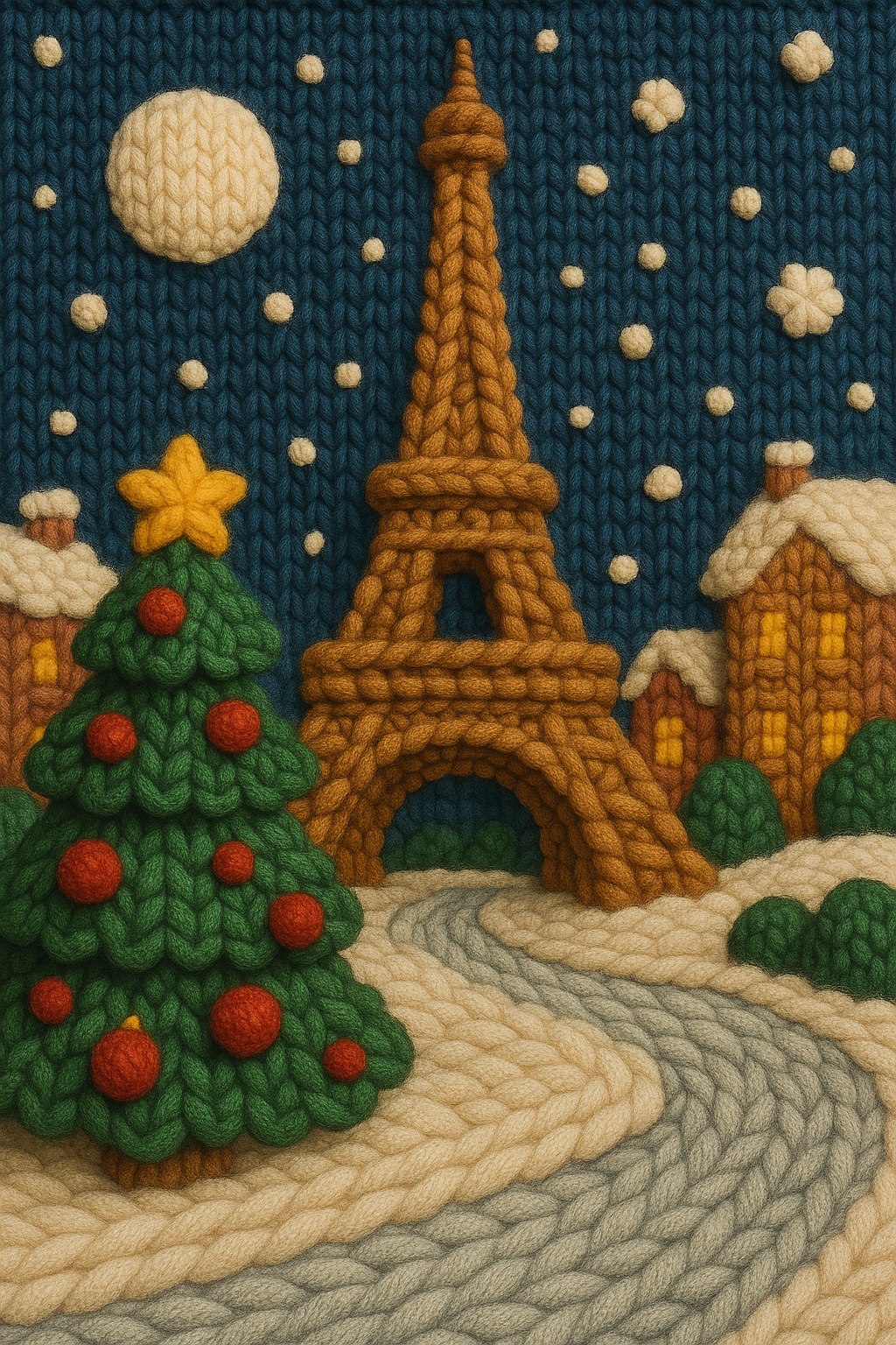 Knitted Eiffel Tower in a Cozy Christmas Scene