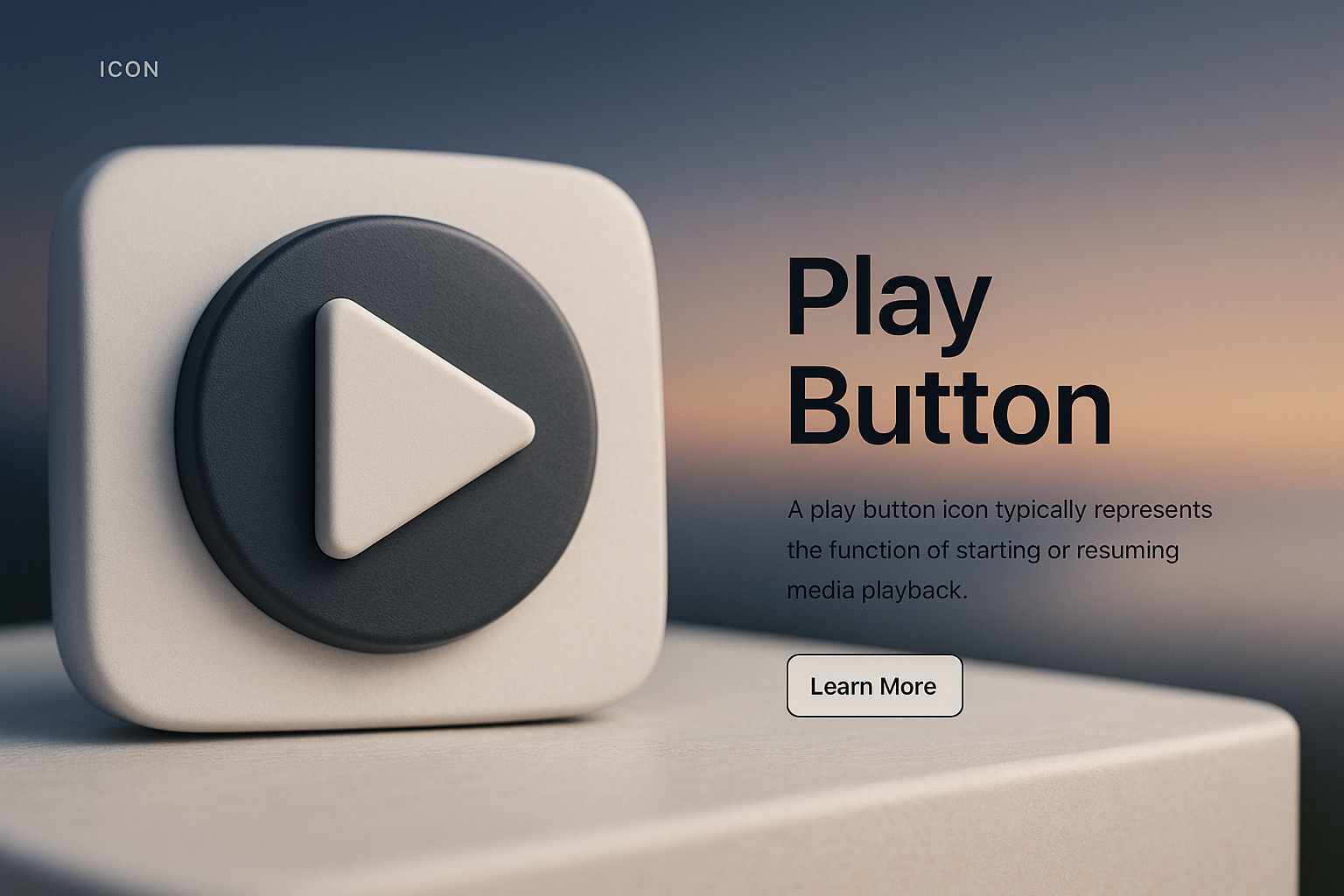 A sleek play button icon set against a gradient background, emphasizing its role in media playback. The design features a subtle color transition, enhancing visual appeal.