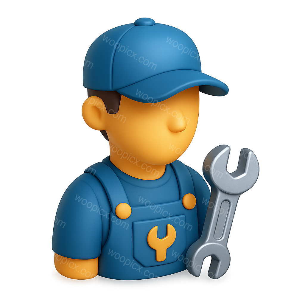 /Premium/Collection: /by davooda/Type: PNG/A stylized 3D icon of an auto mechanic holding a wrench, designed in a three-quarter view. The character features a blue uniform and a playful design, set against a dark background.