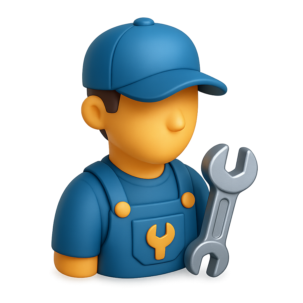 /Collection: /by davooda/Type: PNG/A stylized 3D icon of an auto mechanic holding a wrench, designed in a three-quarter view. The character features a blue uniform and a playful design, set against a dark background.