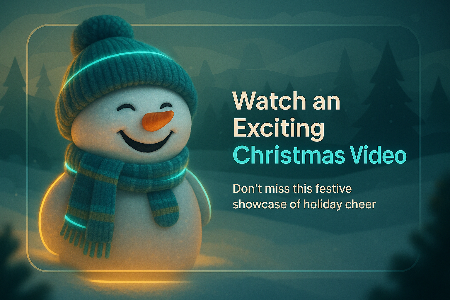 /Collection: /by davooda/Type: PNG/Engaging graphic featuring a cheerful snowman, ideal for promoting a holiday-themed video. The design incorporates a wintery scene with glowing elements, perfect for capturing attention during the festive season.