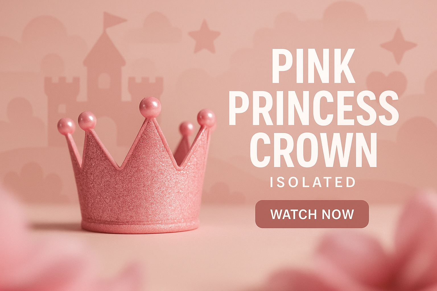 A whimsical image featuring a pink princess crown isolated against a soft, dreamy background, ideal for children's party themes and product promotions.