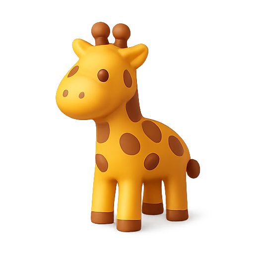 A playful and colorful cartoon-style giraffe toy figure, ideal for children's playtime or nursery decor. The design features soft shapes and vibrant colors.