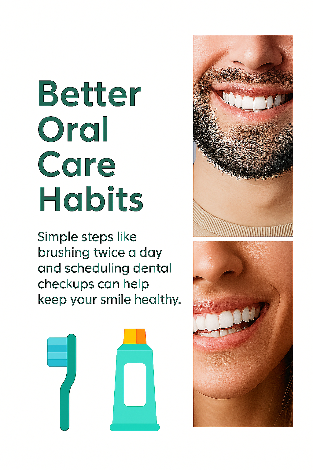 /Collection: /by davooda/Type: PNG/Informative graphic promoting oral care habits, featuring close-up images of smiling individuals and dental care icons. Ideal for health campaigns or dental clinics.