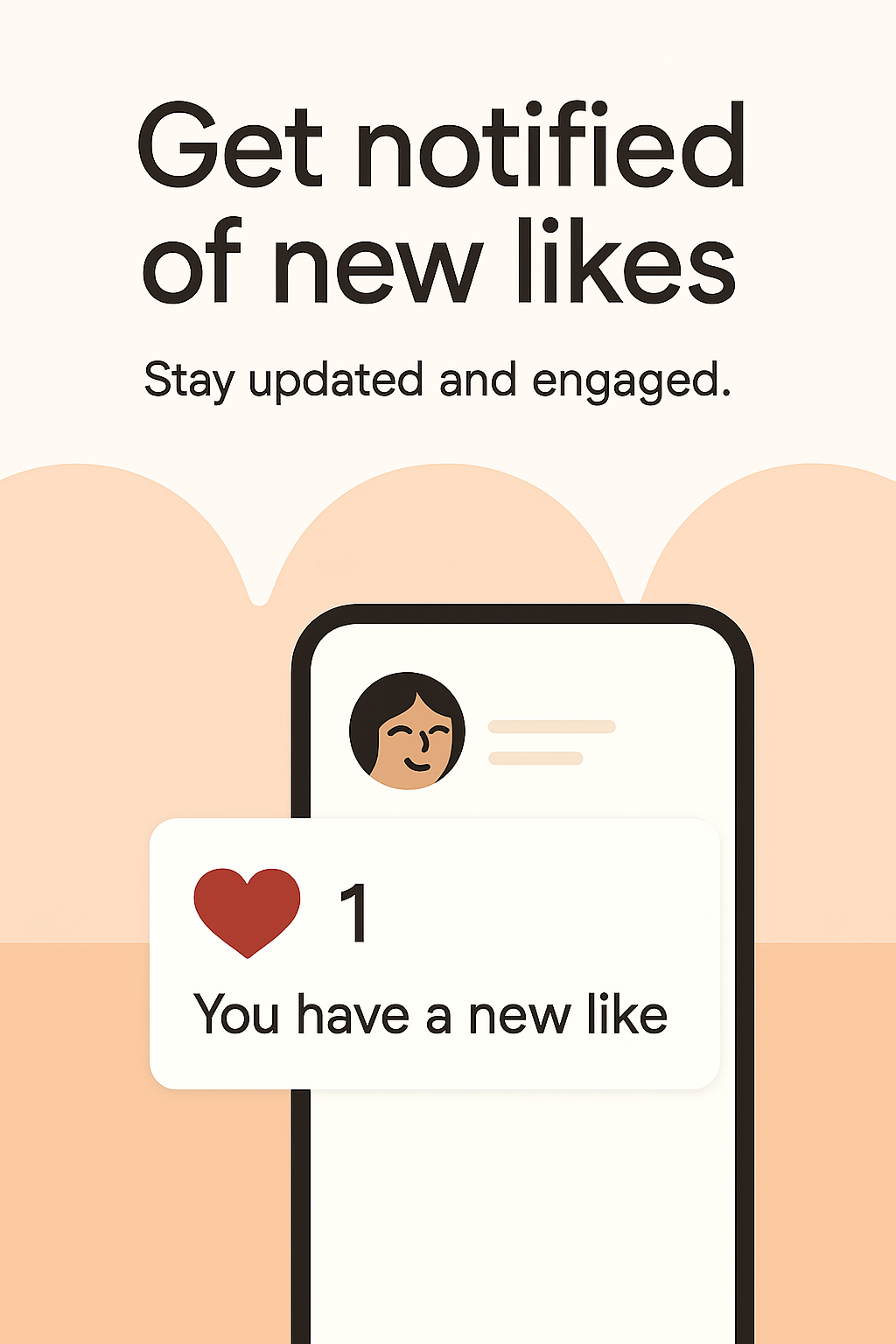 /Collection: /by davooda/Type: PNG/A modern graphic illustrating a mobile phone with a notification about new likes, designed to promote user engagement. The soft color palette and simple illustrations enhance its appeal for social media applications.