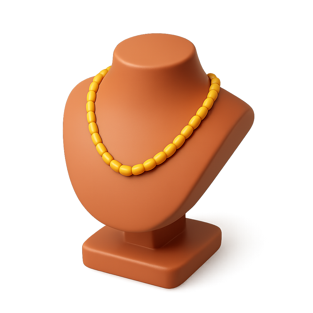 /Collection: /by davooda/Type: PNG/This image features a 3D necklace stand designed in a three-quarter view. The stand has a smooth, rounded surface and displays a yellow bead necklace, all set against a warm gradient background.