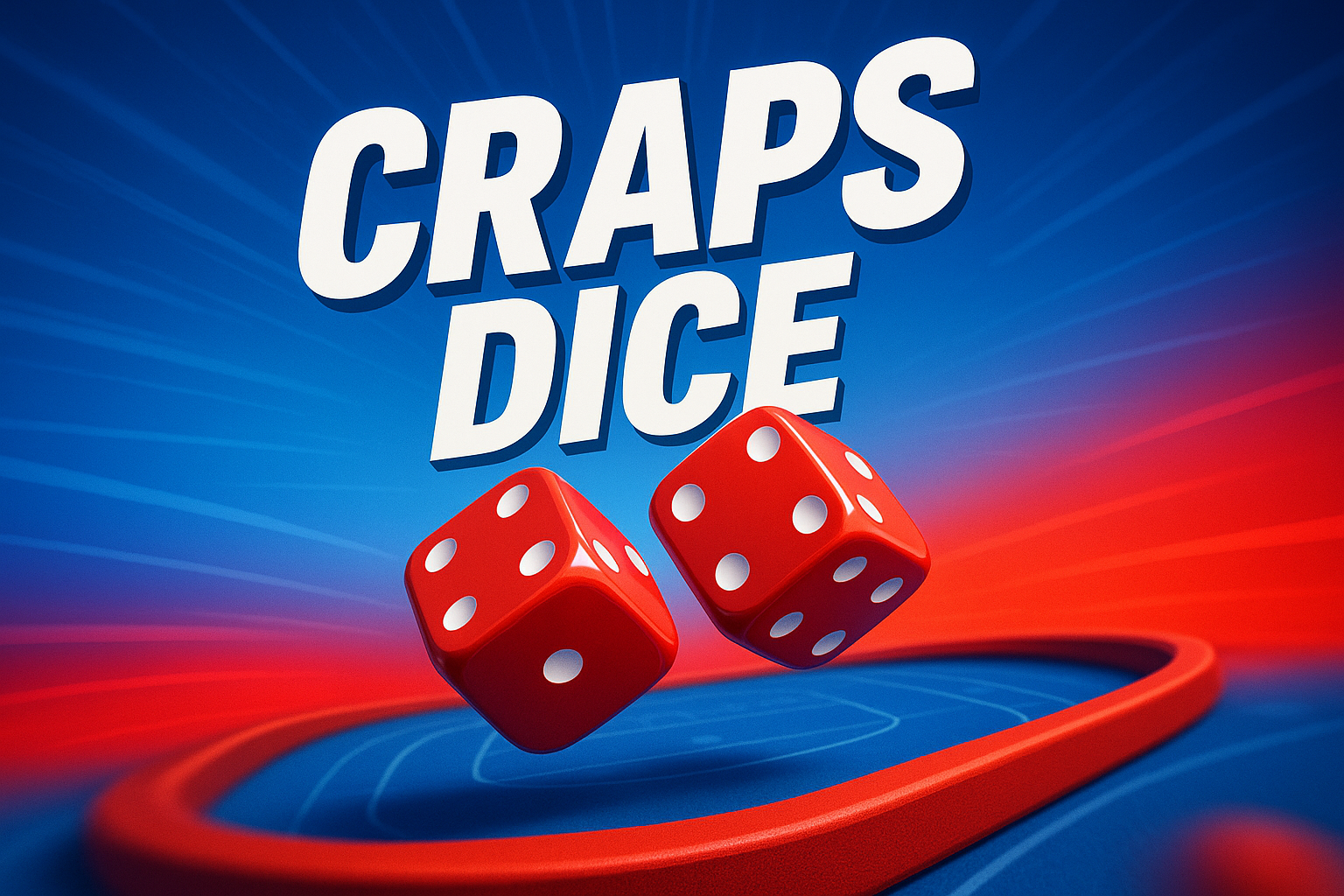 A vibrant three-color scene showcasing red craps dice against a dynamic blue and red backdrop. The composition is layered for depth, emphasizing realism.