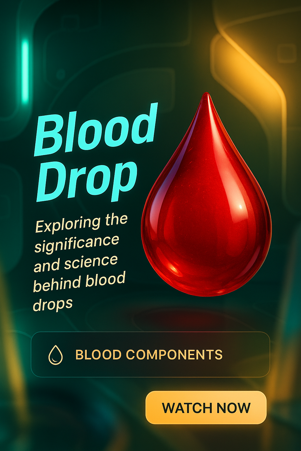 Engaging promotional image featuring a blood drop, emphasizing its significance and science. Ideal for educational content related to health and biology.