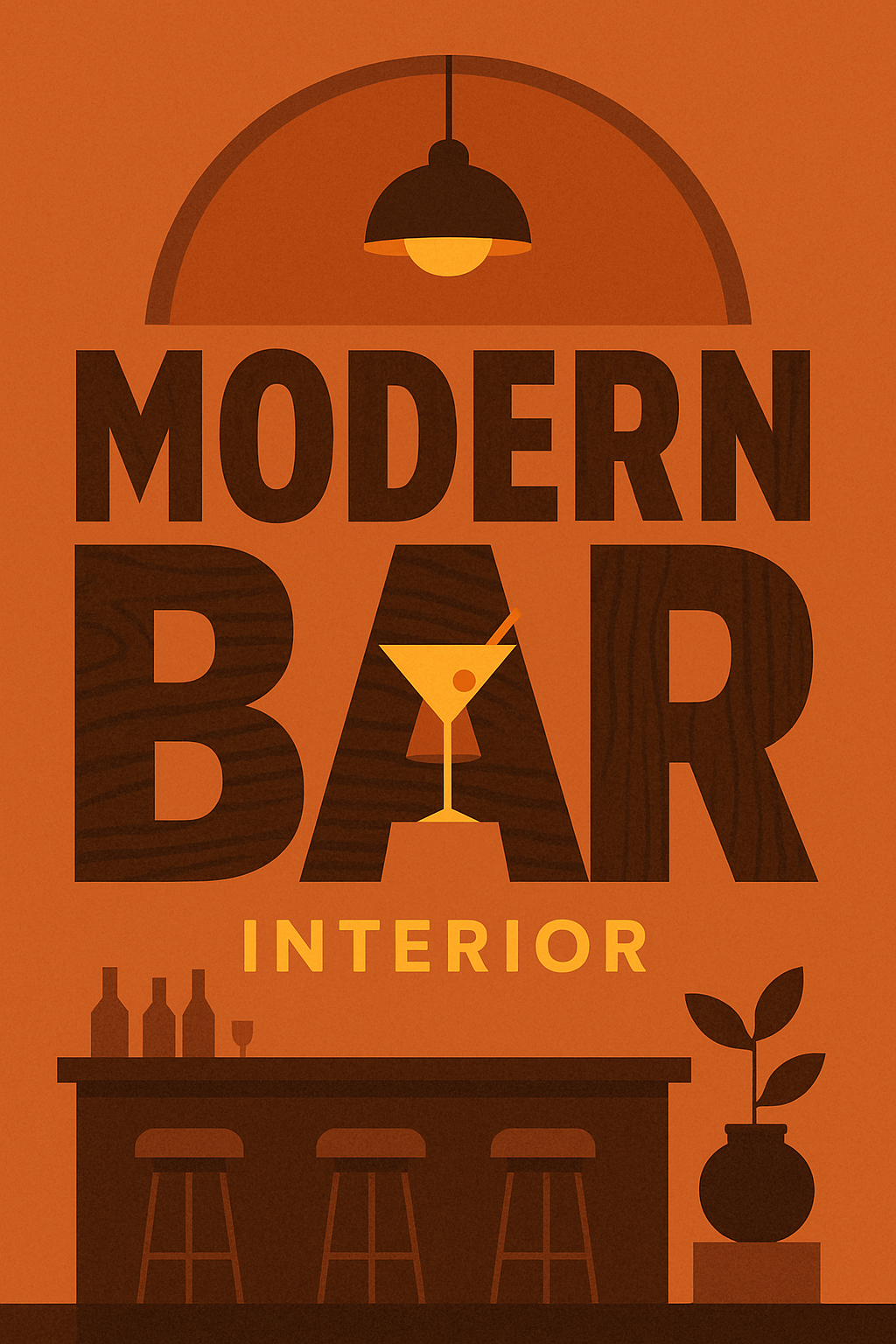 Illustrative design showcasing a modern bar interior theme, featuring bold typography and warm color palette, ideal for hospitality marketing or decor inspiration.