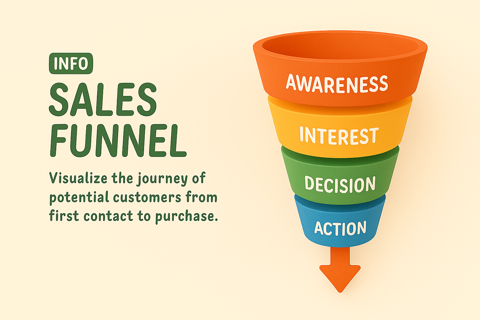 A visually engaging infographic representing the stages of a sales funnel, designed to illustrate the customer journey from awareness to action, suitable for marketing presentations.