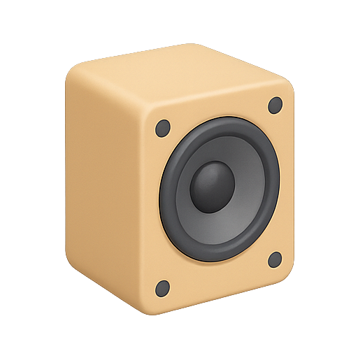 A simplistic and modern 3D icon representing a speaker, featuring a square shape with rounded edges, ideal for digital interfaces or music-related applications.