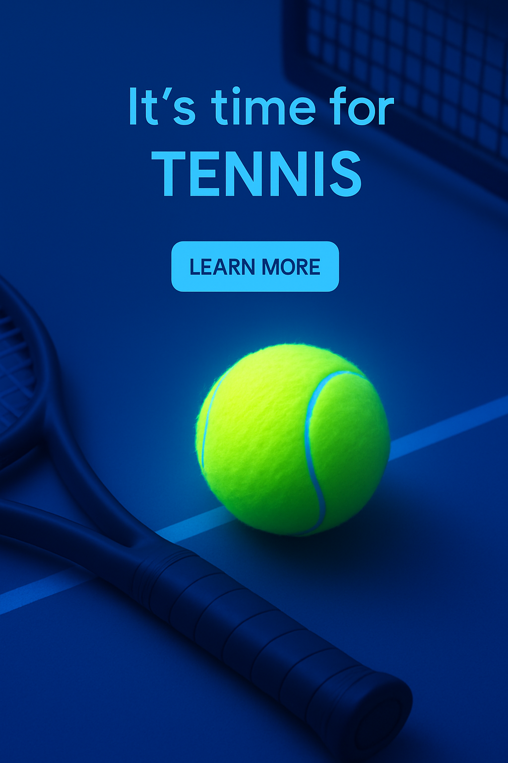 Stylish Tennis Design with 3D Elements and Text Overlay