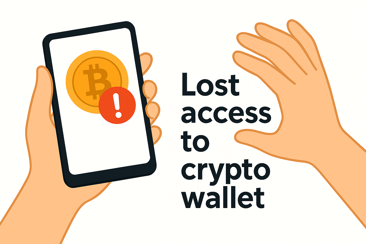 /Collection: /by davooda/Type: PNG/A digital illustration depicting a smartphone showing a Bitcoin symbol with a warning notification, symbolizing issues related to accessing a crypto wallet. This image is suitable for educational or informational content about cryptocurrency security.