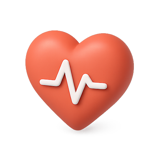 /Collection: /by davooda/Type: PNG/A three-dimensional heart icon featuring a pulse line design, ideal for health and wellness themes. Its vibrant color and smooth texture make it visually appealing for digital applications.