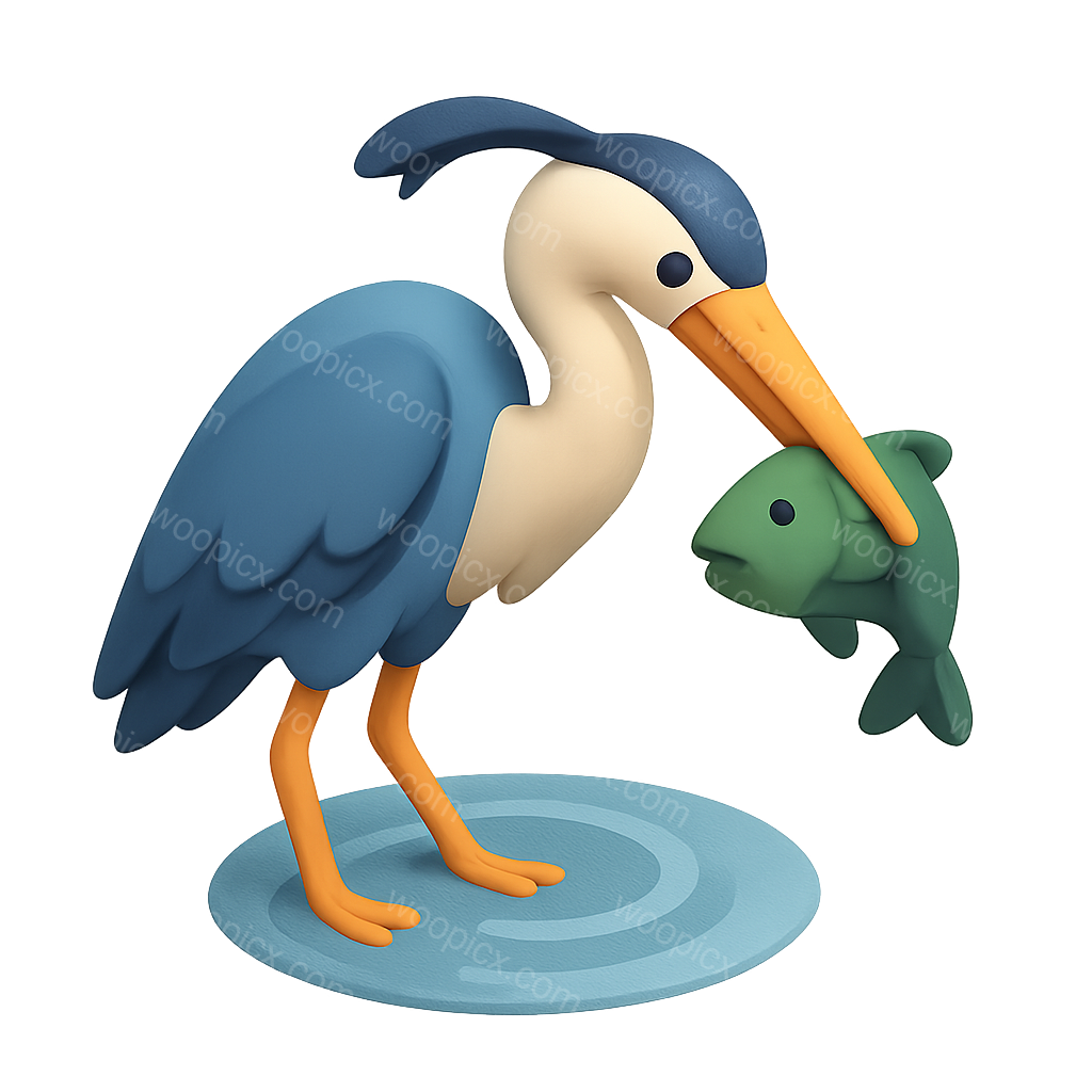 Stylized 3D Heron Icon Fishing in Isometric View