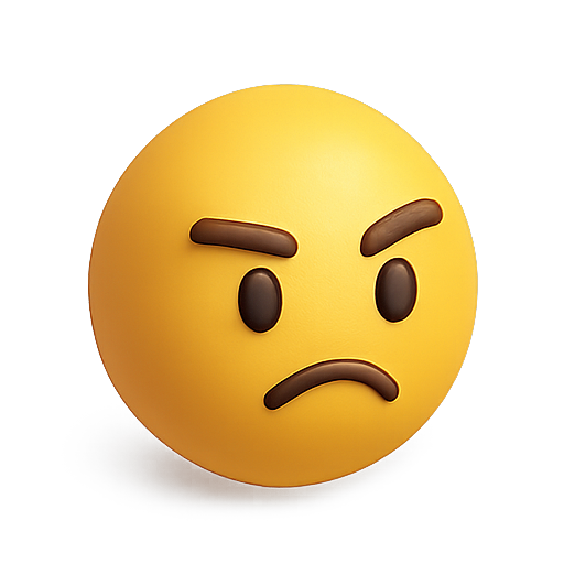 A vibrant 3D representation of an angry emoji, featuring prominent furrowed brows and a frown. Ideal for digital communication and social media expressions.