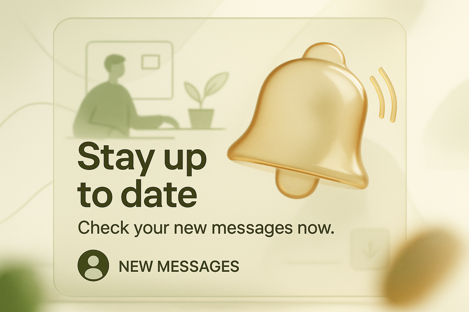 Modern notification banner featuring a bell icon and message alert, designed for digital communication platforms. Ideal for user engagement.