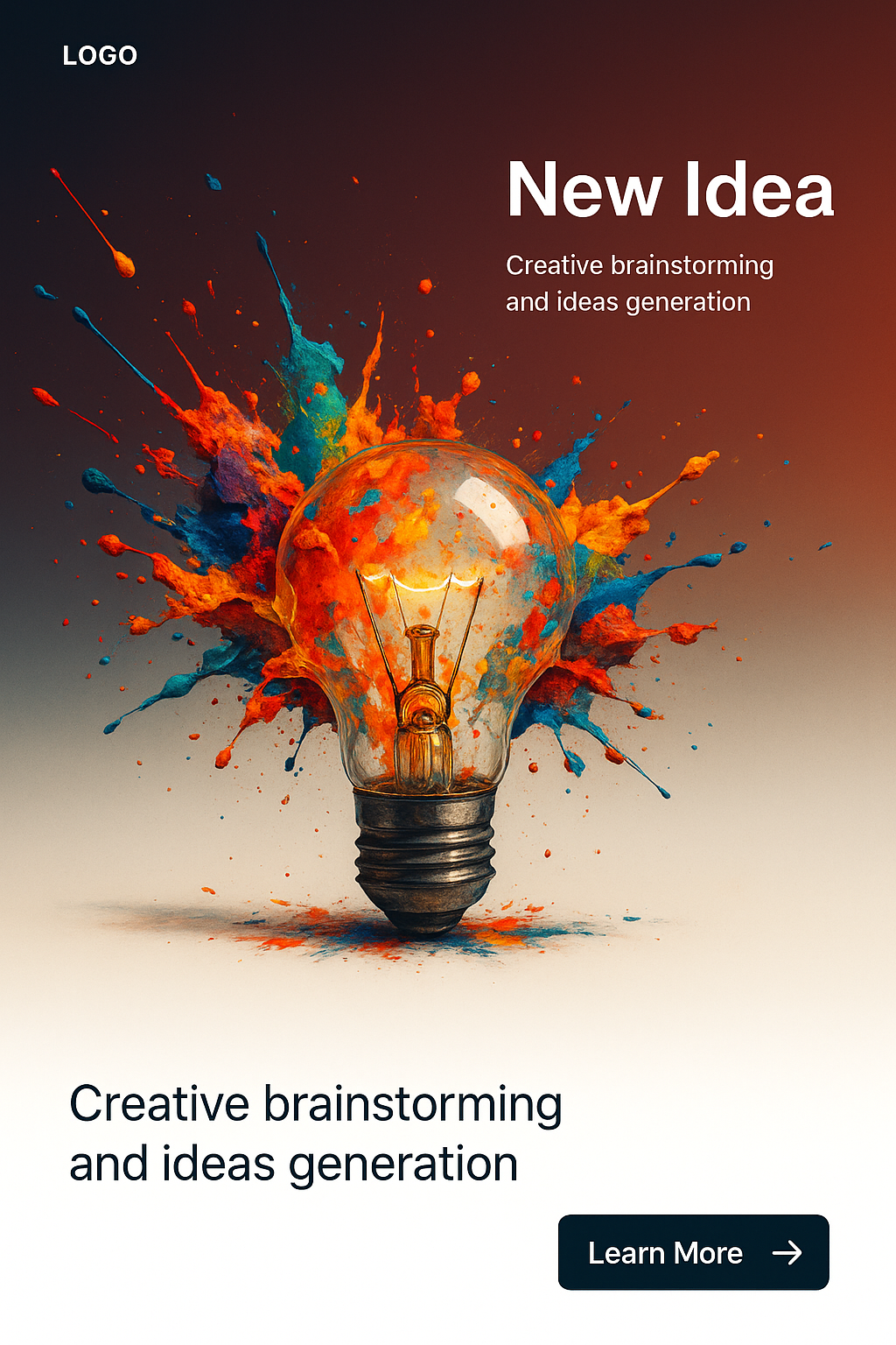 /Collection: /by davooda/Type: PNG/A vibrant light bulb bursting with colorful paint symbolizes creativity and brainstorming. The design features a two-tone gradient background, emphasizing the explosion of ideas.