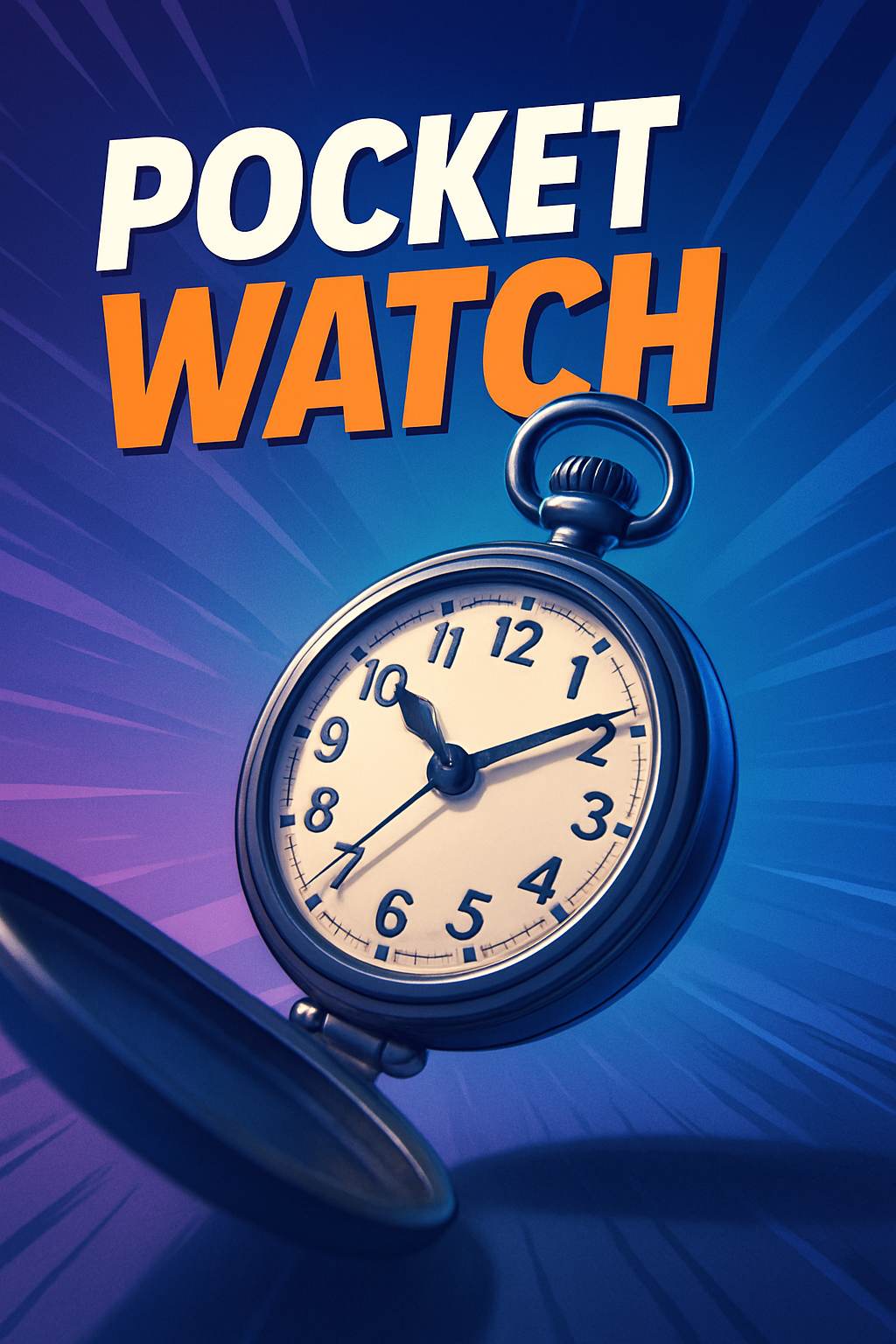 A visually striking graphic featuring a pocket watch against a vibrant, radiating background. Ideal for time-related themes or vintage aesthetics.
