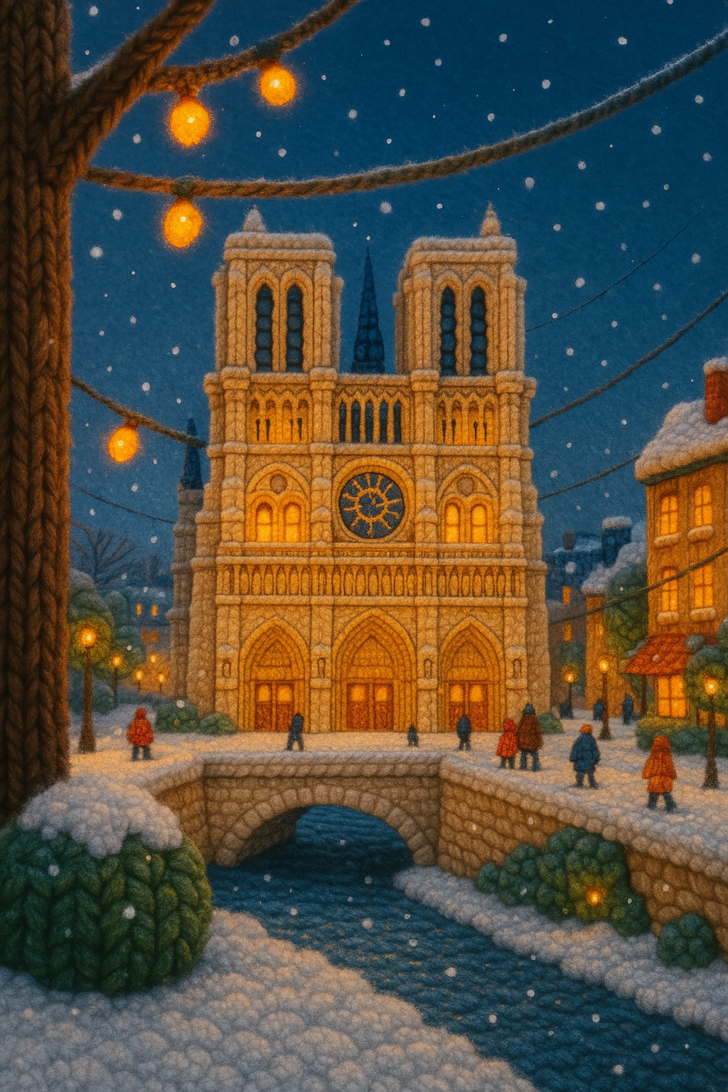 Charming Winter Scene in Paris with Yarn-Like Textures