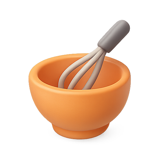 A minimalist illustration of a mixing bowl with a whisk, featuring soft colors and smooth edges, ideal for culinary or kitchen-related content.