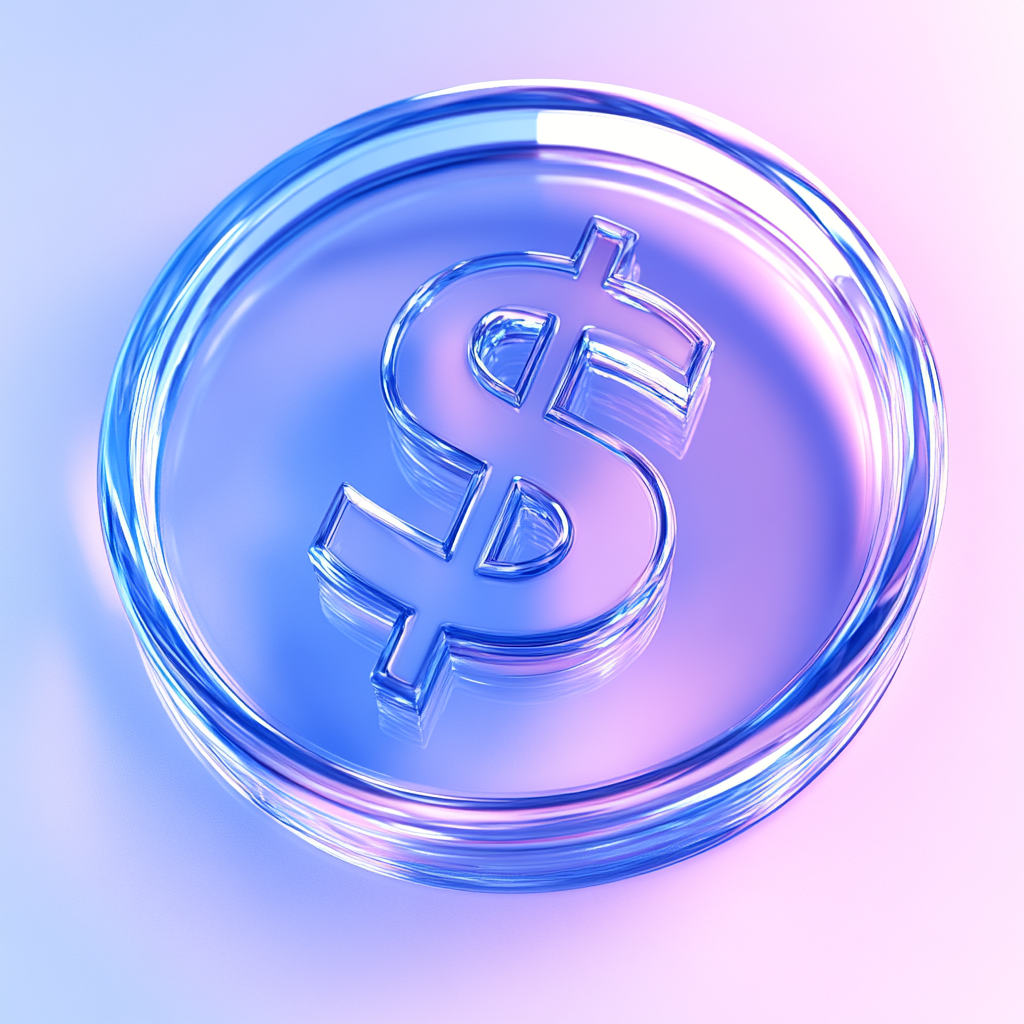 /Collection: /by davooda/Type: PNG/A modern 3D icon featuring a glassy dollar sign encased in a circular frame, set against a soft gradient background. Ideal for financial themes and digital applications.