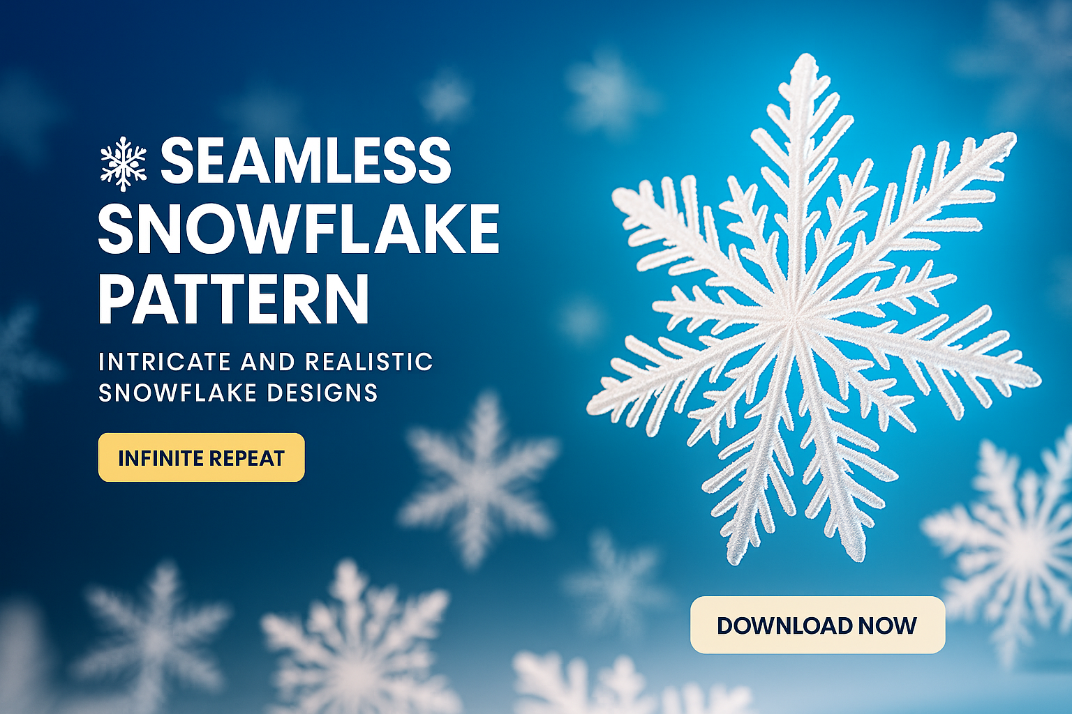 /Collection: /by davooda/Type: PNG/A captivating seamless pattern featuring intricate and realistic snowflake designs against a smooth gradient blue background. The snowflakes are highlighted, creating a visually appealing aesthetic.