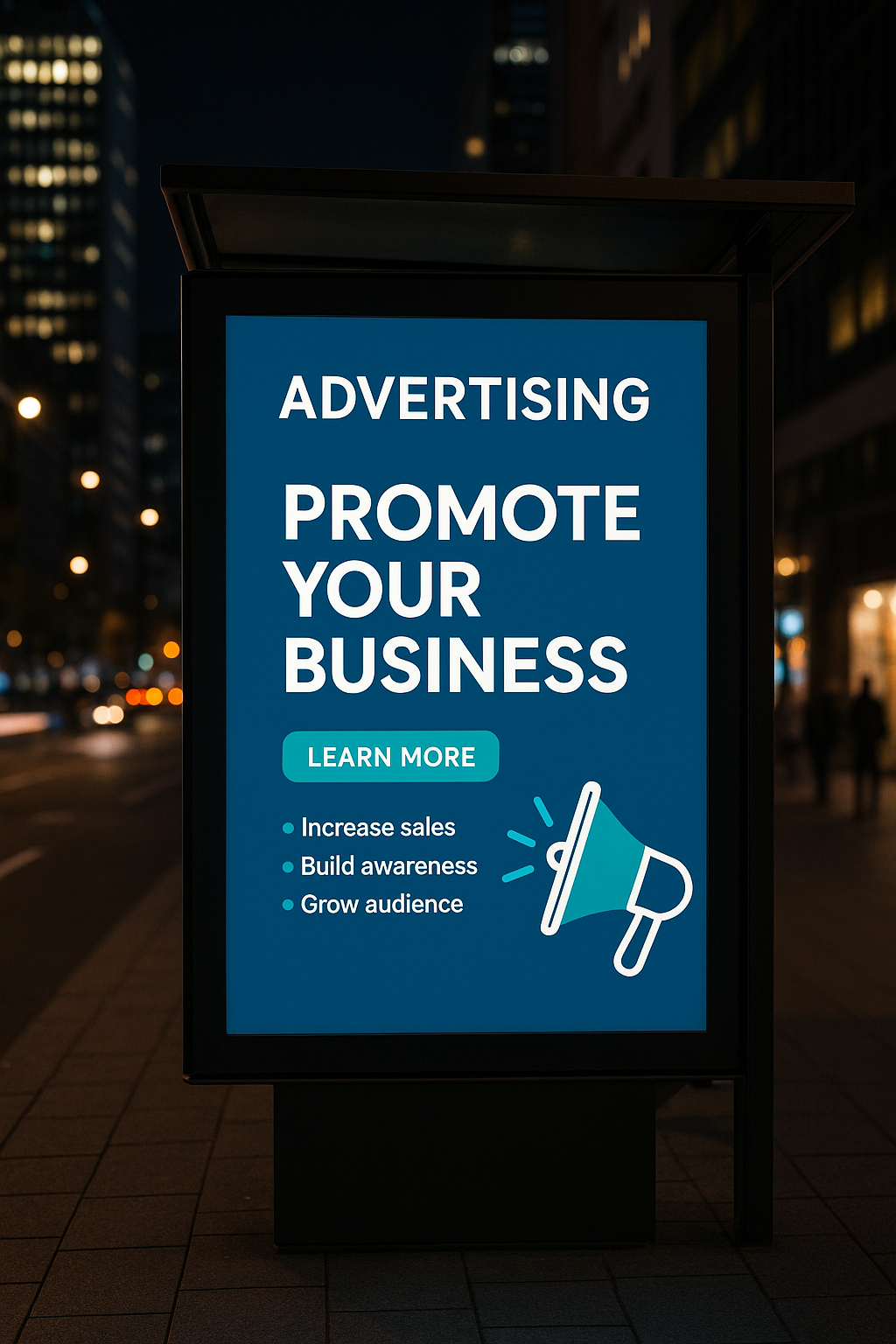 /Collection: /by davooda/Type: PNG/Illuminated digital billboard showcasing advertising services with a modern design, aimed at businesses looking to enhance visibility and sales. Ideal for urban marketing.
