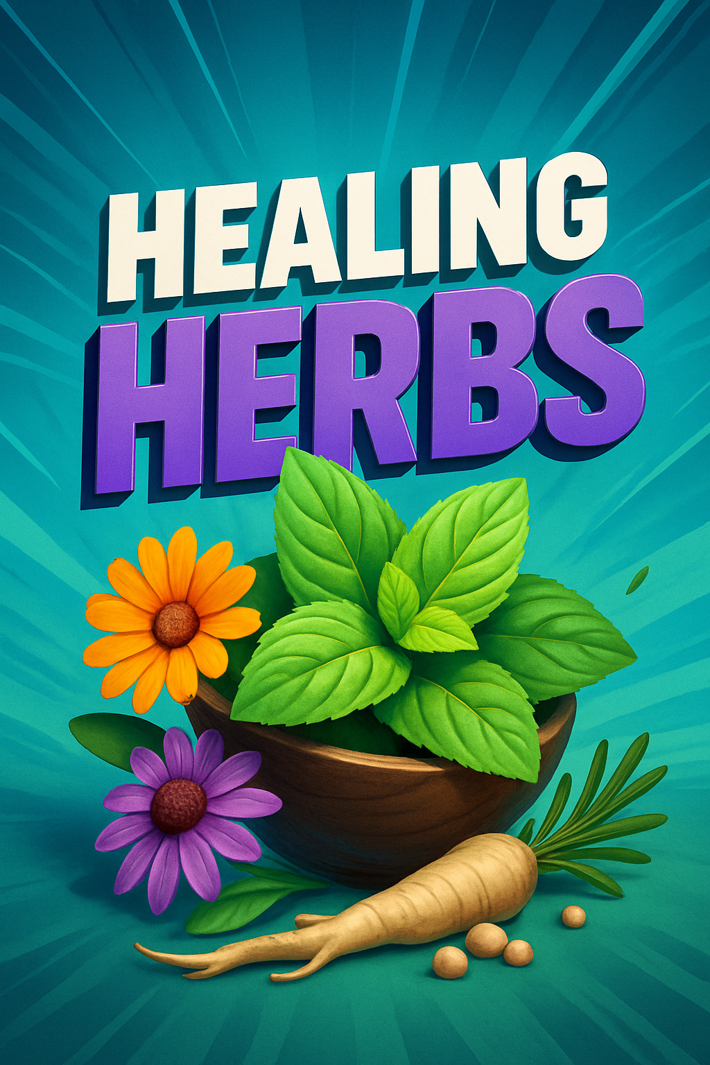 Dynamic Illustration of Healing Herbs with Vibrant Colors