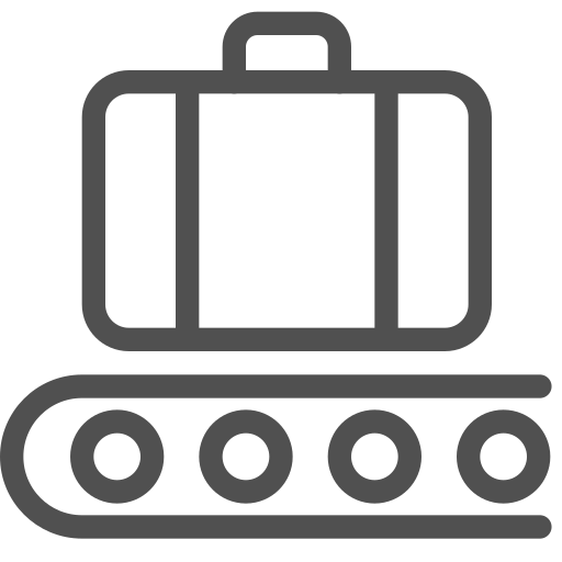 outline simple icon: airport, baggage, conveyor belt, luggage, travel
