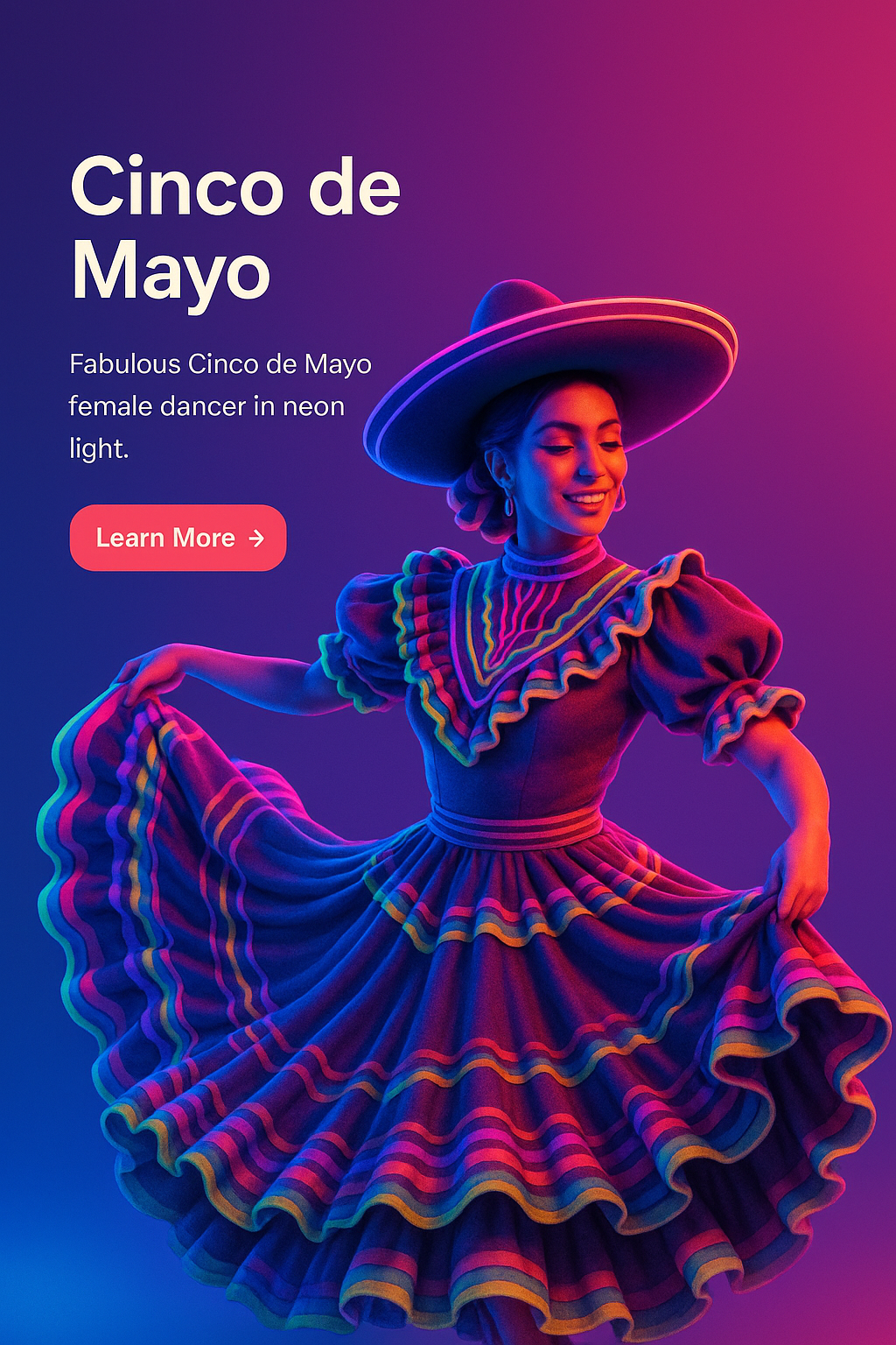 Vibrant Cinco de Mayo Female Dancer in Neon Lights