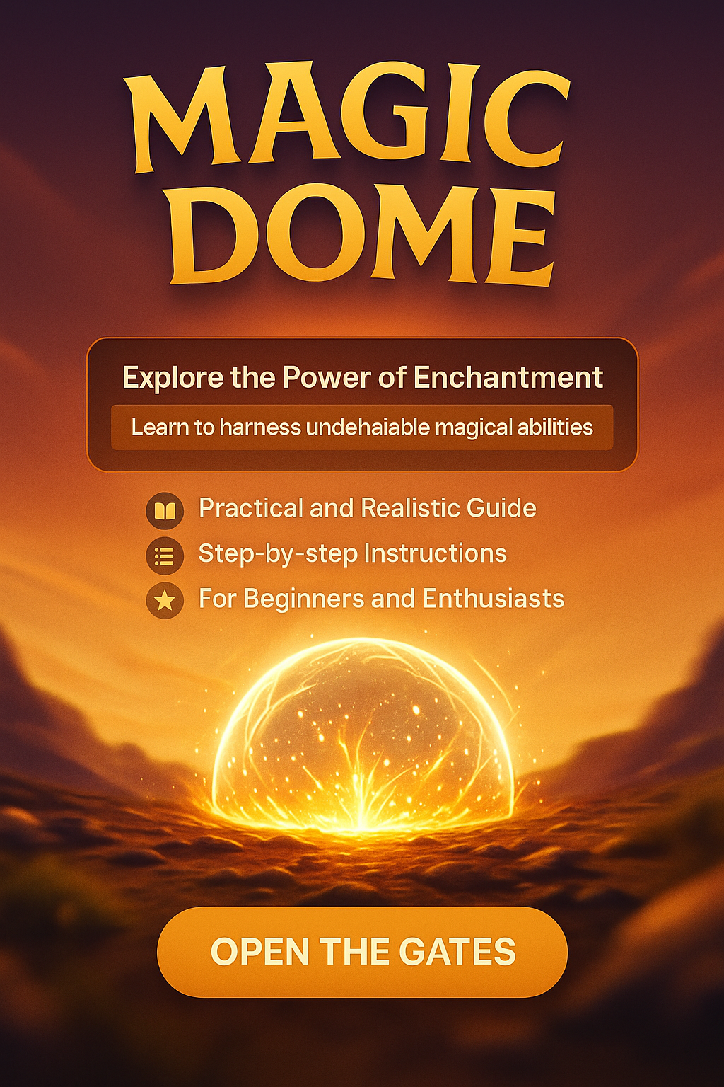 /Collection: /by davooda/Type: PNG/A vibrant graphic featuring a magical dome with glowing energy, complemented by engaging text elements promoting a guide to magical abilities. The design uses a smooth gradient background for a mystical ambiance.