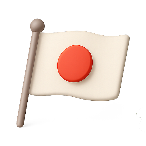 A stylized 3D representation of the Japanese flag featuring a red circle on a white background, suitable for digital communication and social media.