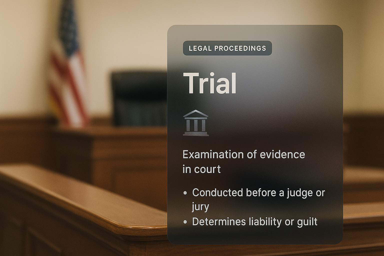 /Collection: /by davooda/Type: PNG/A light-themed web design showcasing a trial concept, featuring a transparent overlay with text about legal proceedings, including examination of evidence, and additional details.