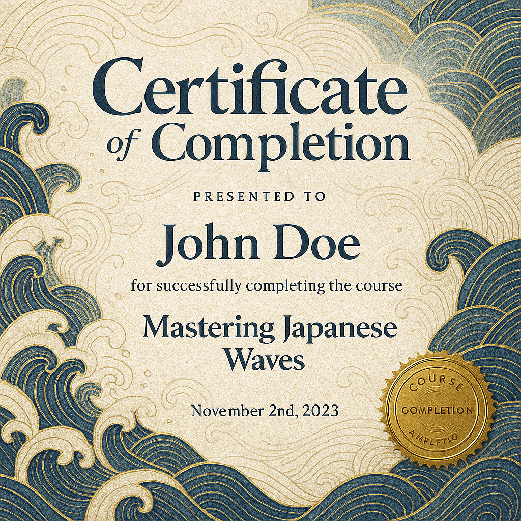 /Collection: /by davooda/Type: PNG/A visually appealing certificate featuring intricate wave patterns and a gold seal, perfect for recognizing course completion. Ideal for educational settings.