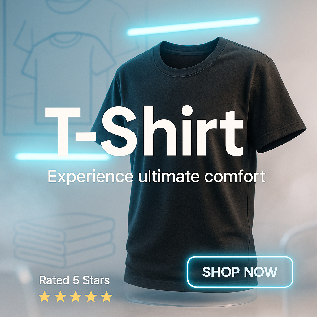 Promotional T-Shirt Advertisement with Modern Design Elements