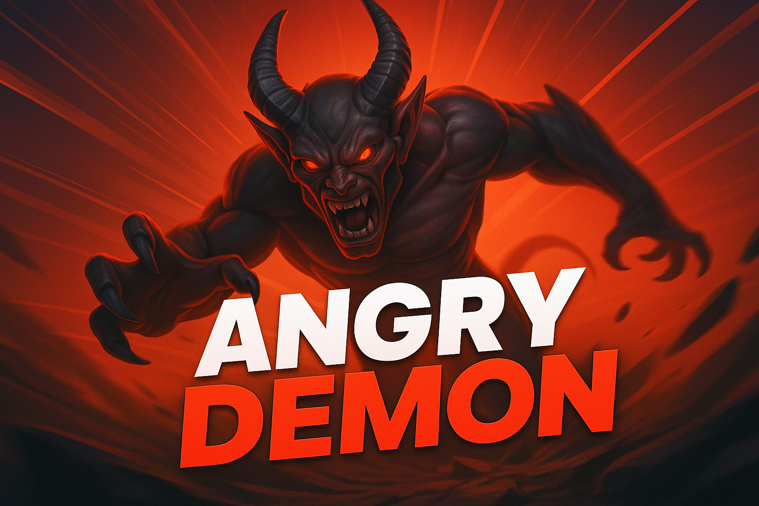 Dynamic Illustration of an Angry Demon with Bold Typography