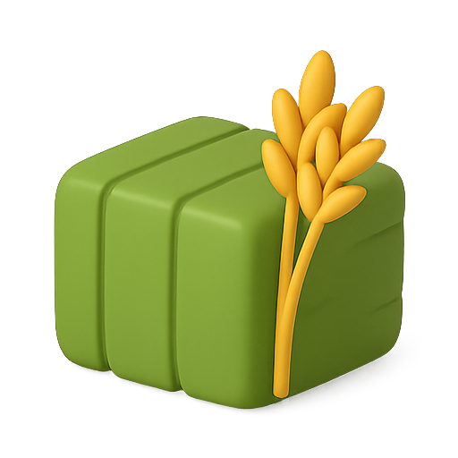 A 3D graphic featuring a green box design adorned with stylized yellow grain elements, ideal for agricultural or food-related themes.